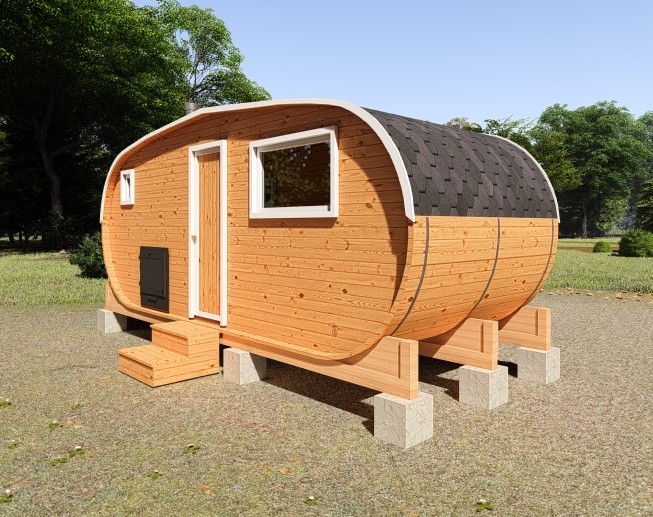 Баня-бочка овальная из кедра 5х2,2 метра Овальная баня-бочка из кедра просторная и вместительная. Имеет два отделения: раздевалку, которую можно использовать как комнату отдыха, и парилку. Для удобства пользования раздевалка оснащена лавочкой, полкой и вешалкой из кедра. В парильном отделении располагается печь и двухуровневый открытый полок. Для установки такой модели не требуется полноценный фундамент, поэтому при необходимости ее можно перенести на другое место. Так же баню-бочку можно укомплектовать верандой со скамейками, козырьком и печью с внешней загрузкой, благодаря которой весь мусор после топки останется на улице. Древесина кедра насыщена эфирными маслами и фитонцидами, которые активируются при воздействии температур. Таким образом, парение в каркаско-щитовых банях из кедра вдвойне полезно.