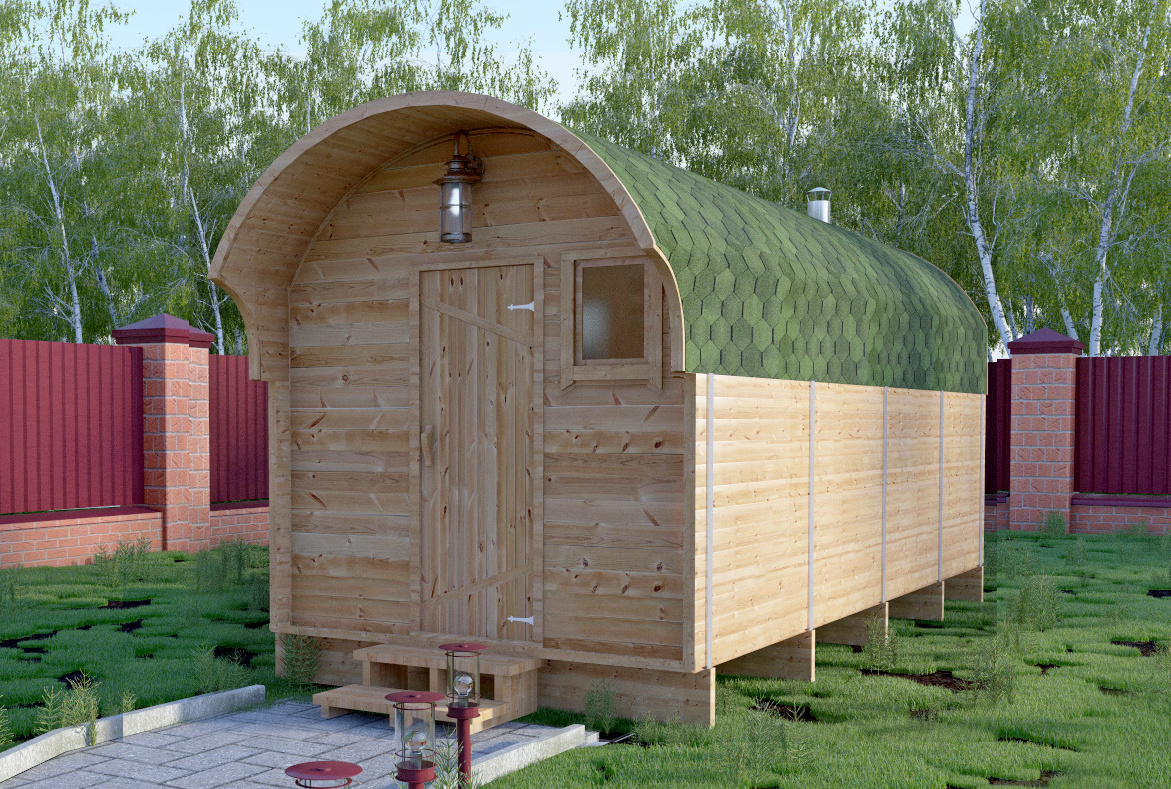 Баня-бочка представляет собой конструкцию в виде бочонка без углов. Такая форма считается оптимальной для равномерного распределения пара по всей внутренней поверхности парной. Таким образом, пар не скапливается в одном месте, а циркулирует по всему объему. Соответственно, круглая (квадратная, овальная) баня экономичная: топится быстро, требует дров мало.