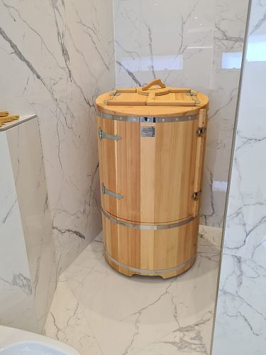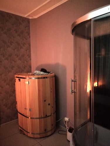 Бочка отлично вписалась в наш уютный дом. Несмотря на небольшие размеры помещения, она дополняет интерьер, а не портит его. Мы пользуемся ей каждый день, очень довольны. Это действительно нужная вещь в частном доме, где нет бани или сауны. Рекомендую всем!