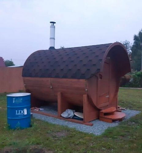 Круглая баня-бочка отличный вариант для тех кто ценит свое время и любит не стандартные решения. Топится она быстро, выглядит стильно и красиво. Заказали мы такую в небольшой семейный отель. Баней довольны и мы и клиенты. Спасибо работникам компании за качественный сервис.